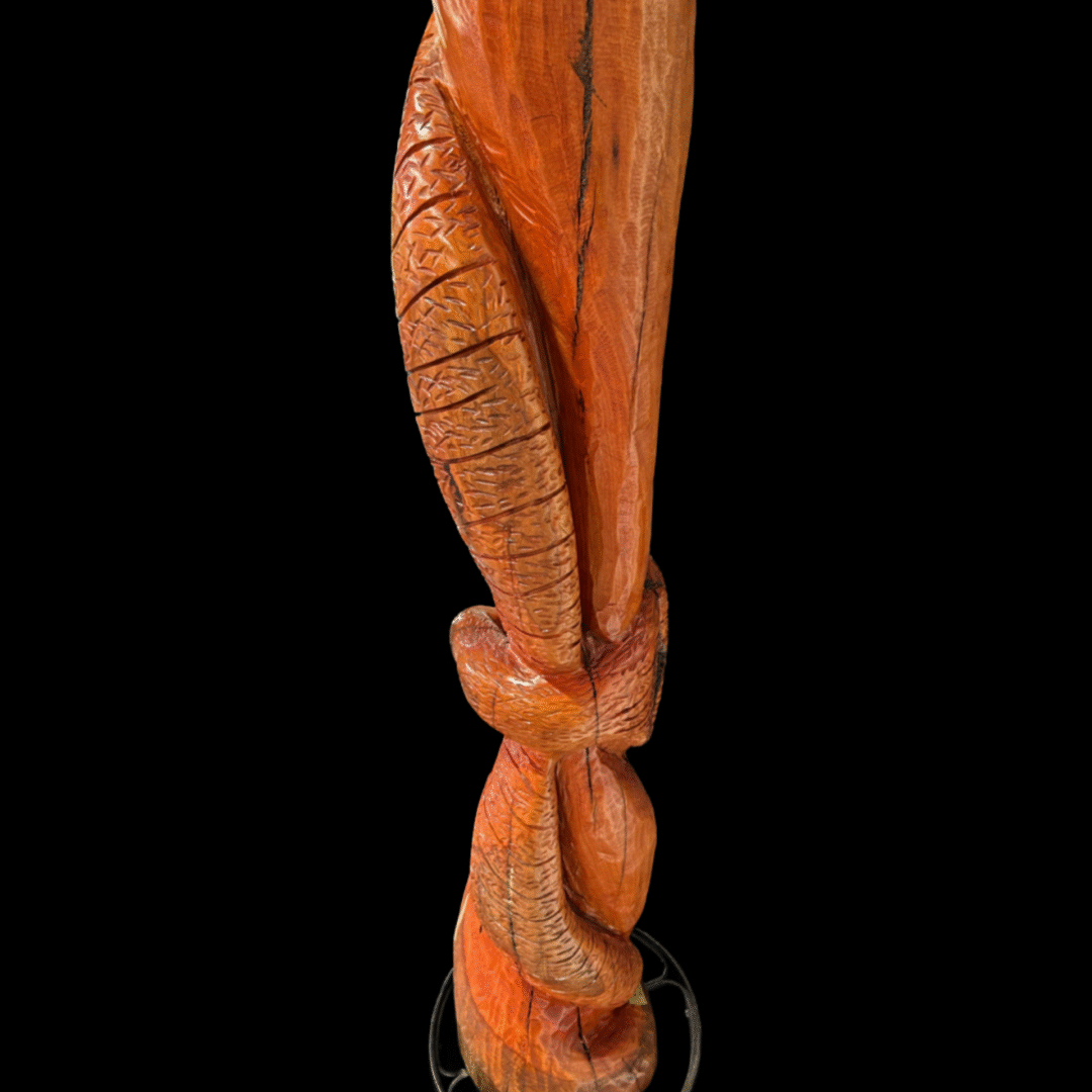 Red Gum timber sculpture, Height- 1m 740cm and Height – 80-100 approximately kilograms.